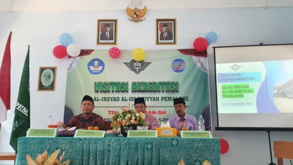 Proses akreditasi sekolah merupakan agenda penting yang menjadi antisipasi seluruh pihak sekolah. Dengan mengucap rasa syukur kepada Allah SWT, SD Al-Irsyad Al-Islamiyyah Pemalang telah menyelesaikan semua proses akreditasi sekolah. Tepatnya pada tanggal 16-17 Oktober 2023, Tim Asesor dari Badan Akreditasi Nasional Sekolah/Madrasah (BAN-S/M) Provinsi Jawa Tengah yang berjumlah dua orang, melakukan visitasi sekolah SD Al-Irsyad Al-Islamiyyah Pemalang yang berada di Jalan Semeru No 15, Kelurahan Mulyoharjo, Pemalang.