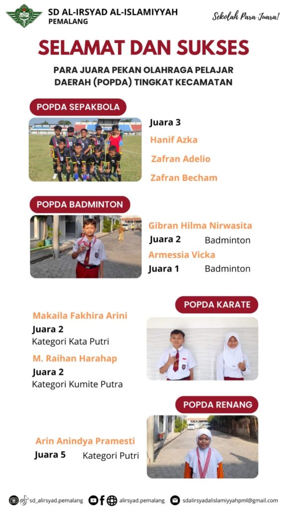 Dibalik wajah yang tersenyum memegang Piala, terdapat kerja keras yang luar biasa. Tidak hanya para Juara, tetapi semua kontingen SD Al-Irsyad Pemalang yang mengikuti POPDA tahun ini sudah menampilkan kemampuan terbaiknya. Berbulan-bulan mereka menyeimbangkan antara sekolah dan latihan, serta menjaga pola makan untuk mempersiapkan diri dalam mengikuti POPDA 2024.