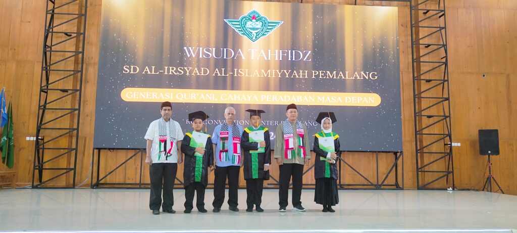 Sabtu, 8 Juni 2024- SD Al-Irsyad Al-Islamiyyah Pemalang mengadakan prosesi Wisuda Tahfiz dengan tema “Generasi Qur’ani, Cahaya Peradaban Masa Depan.” Bertempat di RGP Convention Center, 74 murid SD Al-Irsyad Pemalang dinyatakan lulus. acara wisuda dipandu oleh Ustadzah Naeli, Ustadazah Aski, dan Ustadz Ghoni sebagai pembawa acara. Wisuda Tahfiz dimulai pada pukul 07.30 dan selesai pada pukul 11.30.